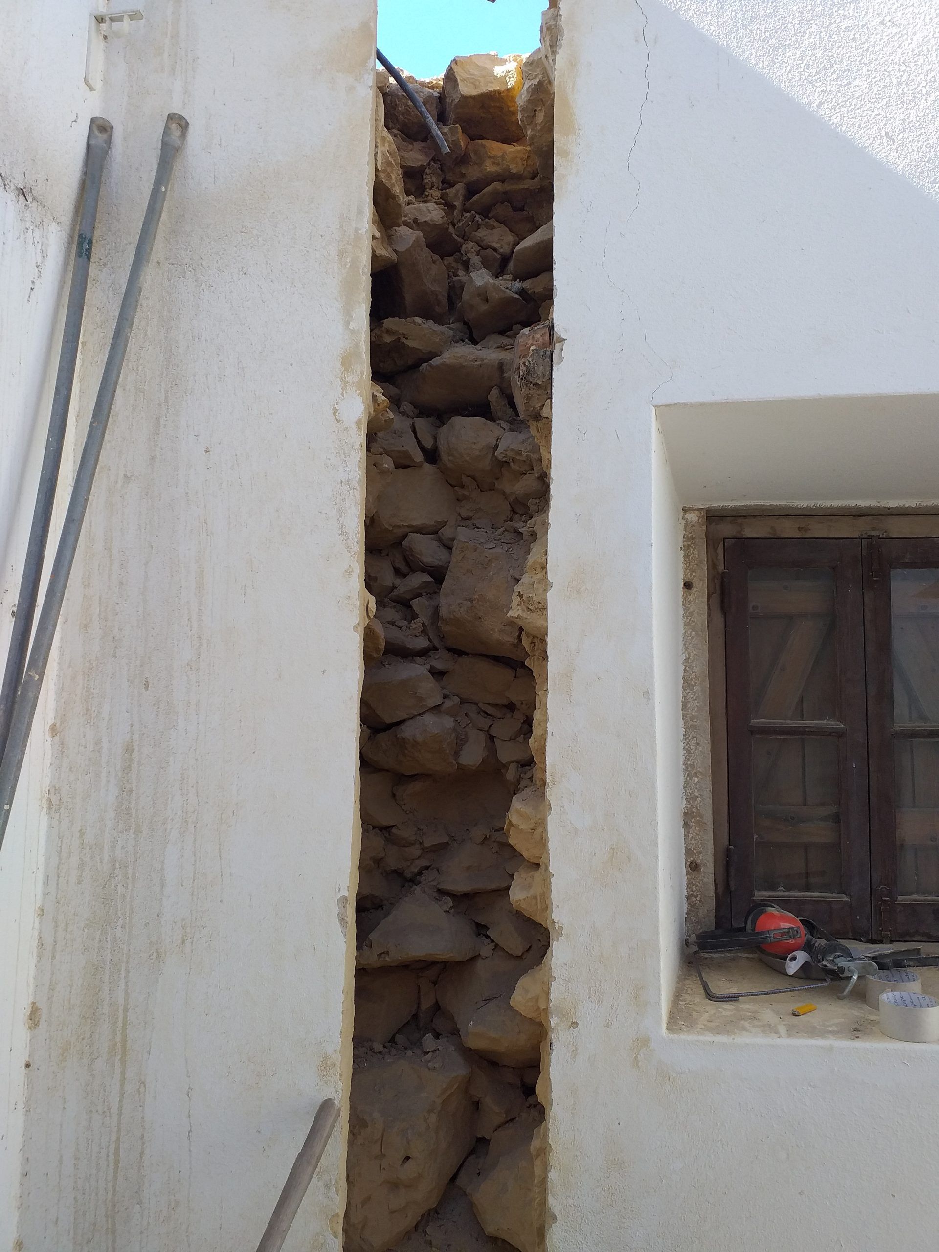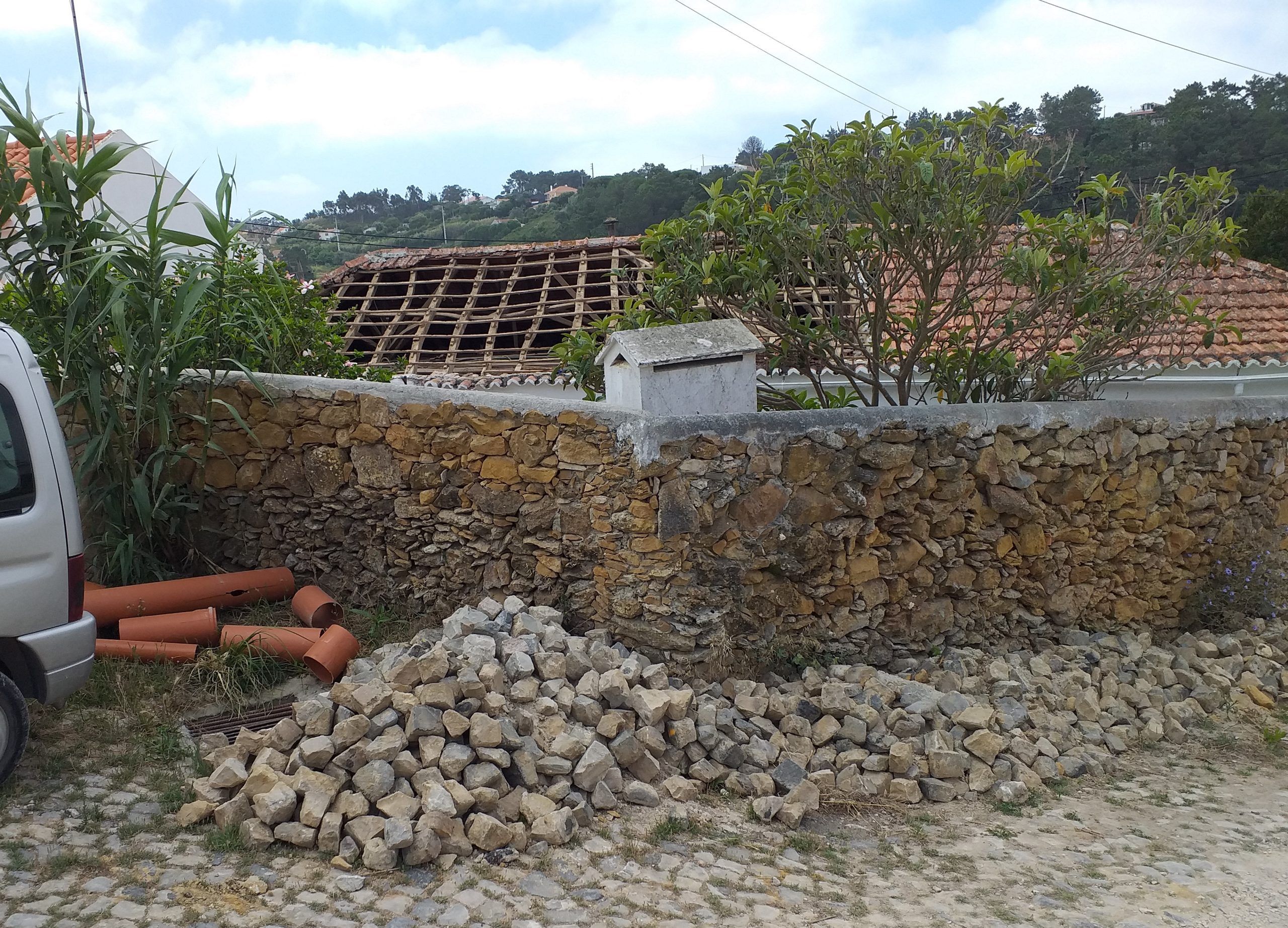 Casa rural centenária alvo de remodelação parcial. Reforçámos a estrutura existente, remodelámos o telhado, recuperámos os espaços interiores afetados pela entrada de água, modernizámos o sistema elétrico, desativámos a fossa séptica e ligámos a casa à rede pública de saneamento, com orçamento e espaço de obra limitados. Introduzimos janelas e túneis de luz na cobertura, que trouxeram claridade a áreas esconsas, e aproveitámos o sótão para criar novos espaços interiores.